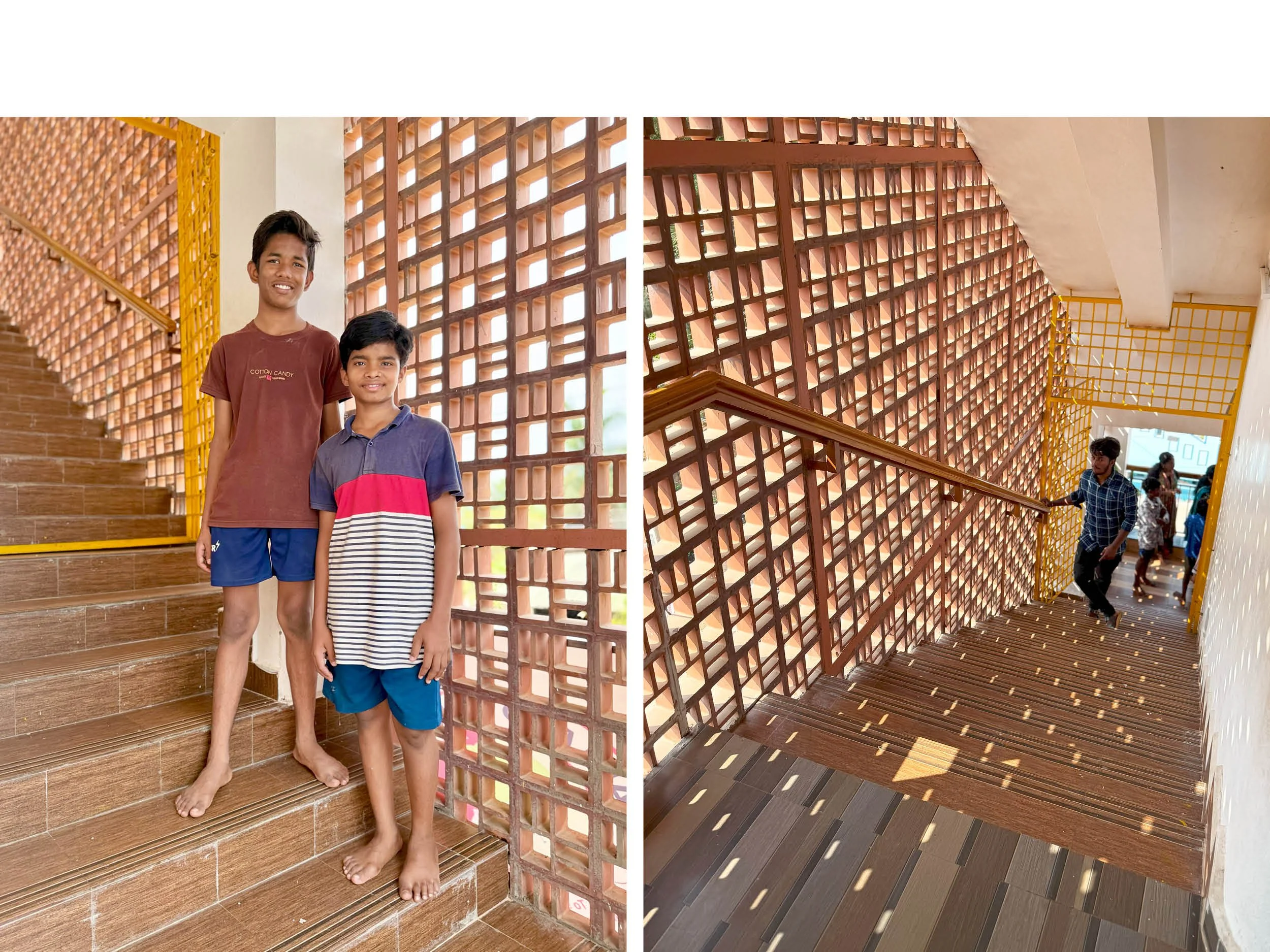 Southern India has a high-humidity, tropical climate with muggy summers and seasonal, monsoon rains. Traditional Indian architecture in the region uses jali (or jaali), perforated screens, to encourage natural airflow through the building while simultaneously blocking out the sun and rain. The Bethany Home for Children is similarly designed to maximize passive cooling without the need for costly and carbon-intensive air-conditioning systems.