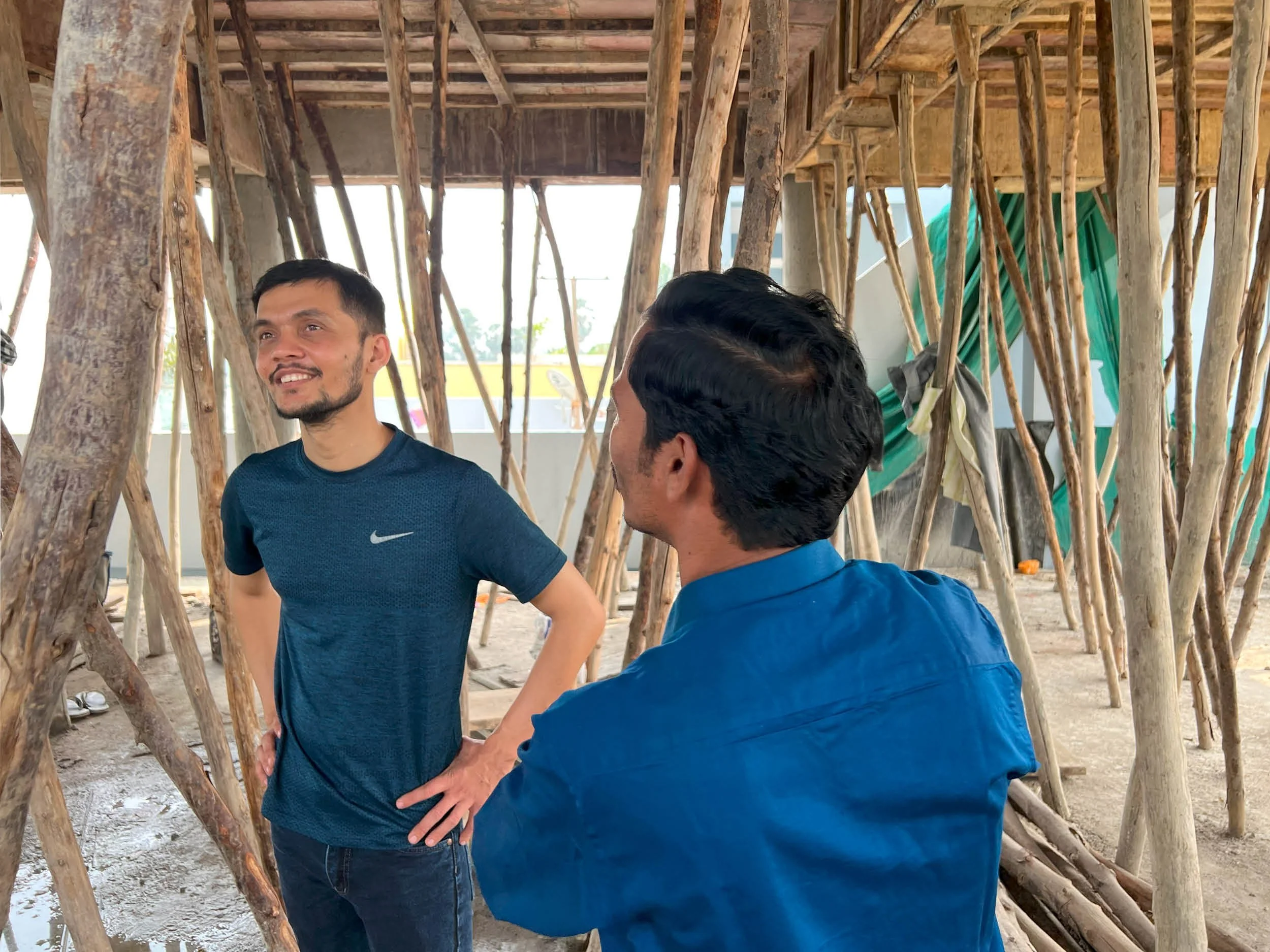 The four-story orphanage has public spaces on the lower levels and private spaces above. A stair leads from the street corner at the ground floor up to a broad, shaded balcony. On this second level, a 40-seat dining hall and kitchen serves meals for the resident children and provides an event space for the whole Bethany community. Shared bedrooms and communal bathrooms are on the two floors above, separated by gender and reached through private staircases. A private play area on the occupiable rooftop is shaded by three photovoltaic canopies that generate grid-independent electricity. Terracotta floor tiles and locally crafted hardwood doors and windows further limit the building’s carbon footprint.